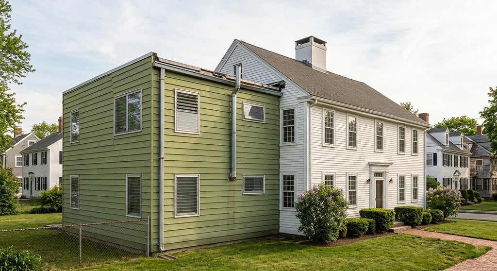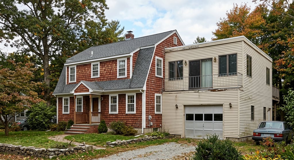 They tend to share the same characteristics. Same siding material as the original house. Same color, or close to it. Utterly different in form, proportion, roofline, and window placement from everything next to them. The result is a building that tried to match and failed, which is somehow worse than not trying at all.