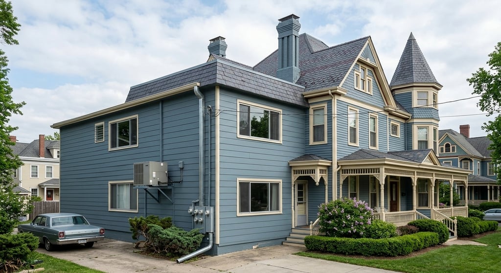 The other factor, and let's be honest about this, was money and materials. The postwar building boom prioritized speed and economy. Aluminum siding, asbestos shingles, cheap lumber, sliding aluminum windows: these were the materials of the era, and they were used on additions to houses that had been built with entirely different materials and entirely different intentions. The result wasn't just formally wrong, it was materially wrong. And it aged badly, because cheap materials always do.